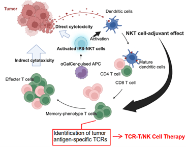 がん患者の末梢血をNKT細胞で刺激し、抗腫瘍T細胞を誘導・採取してがん抗原特異的なTCRを同定する方法。そのTCRを導入したその患者固有のTCR-T/NK細胞治療薬。もしくは誘導した抗腫瘍T細胞を治療に用いる。