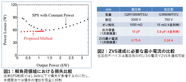 ゼロ負荷に至るまでZVS(ゼロ電圧スイッチング)を維持し、変換効率の低下を防ぐ。特に、従来制御ではハードスイッチングとなっていた軽負荷時において効率が向上